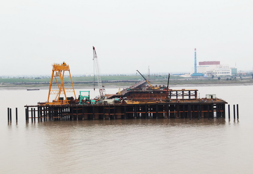 截止目前,项目部正在完善平台的消防、安全等配套设施,待完成检查验收后,平台将正式投入使用。大桥北岸主墩的第一根桩基也将于10月中旬开始施工。