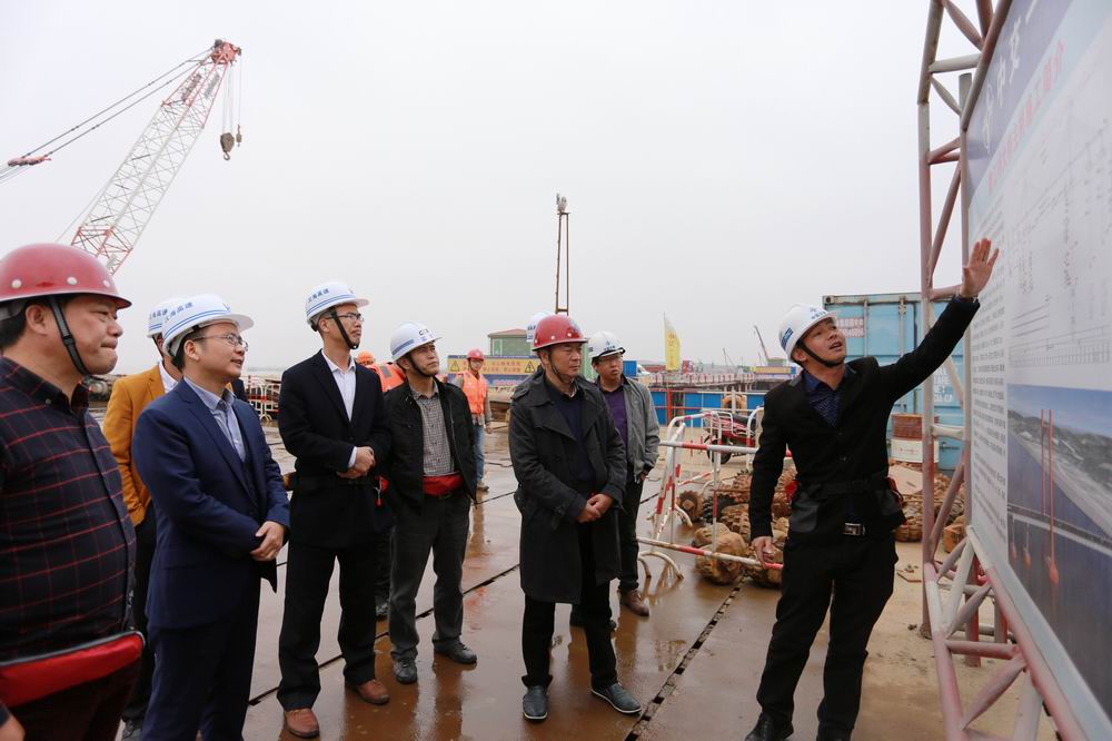 为确保平苍段工程项目顺利推进,3月7日,温州市交通工程质量监督局周建华局长、王光达副局长一行专程到平苍处、鳌江特大桥施工现场检查指导工作。