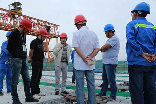 在施工现场,刘钱简要汇报了工程进展情况、政策处理难点及交通组织工作等。蒋理江针对政策处理工作和交通组织工作提出了指导性意见,要求各参建单位要集中力量,克难攻坚,科学合理的组织、安排施工计划赶抢工期。楼晓寅对南塘至黄华段项目的工程质量、安全生产、标准化建设等工作给予充分肯定,同时在施工工艺、施工方案、安全管理等方面提出了更高的要求,一是施工单位要严把材料关和施工工艺关,强化措施,严格管理,确保工程质量;二是业主单位和监理单位要严格审核各项施工方案,在原有的基础上进行优化,进一步发挥方案在项目管理中的作用,建立专项施工方案审核制度;三是要全面落实安全生产责任制,将各项制度措施落到实处,切实做到文明、安全施工。