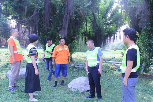 8月24日,集团纪委书记郑书讯带队到温州东绿化广场检查安全生产工作。经营公司董事长、总经理刘赛,绿化工程部经理高献国等陪同检查。