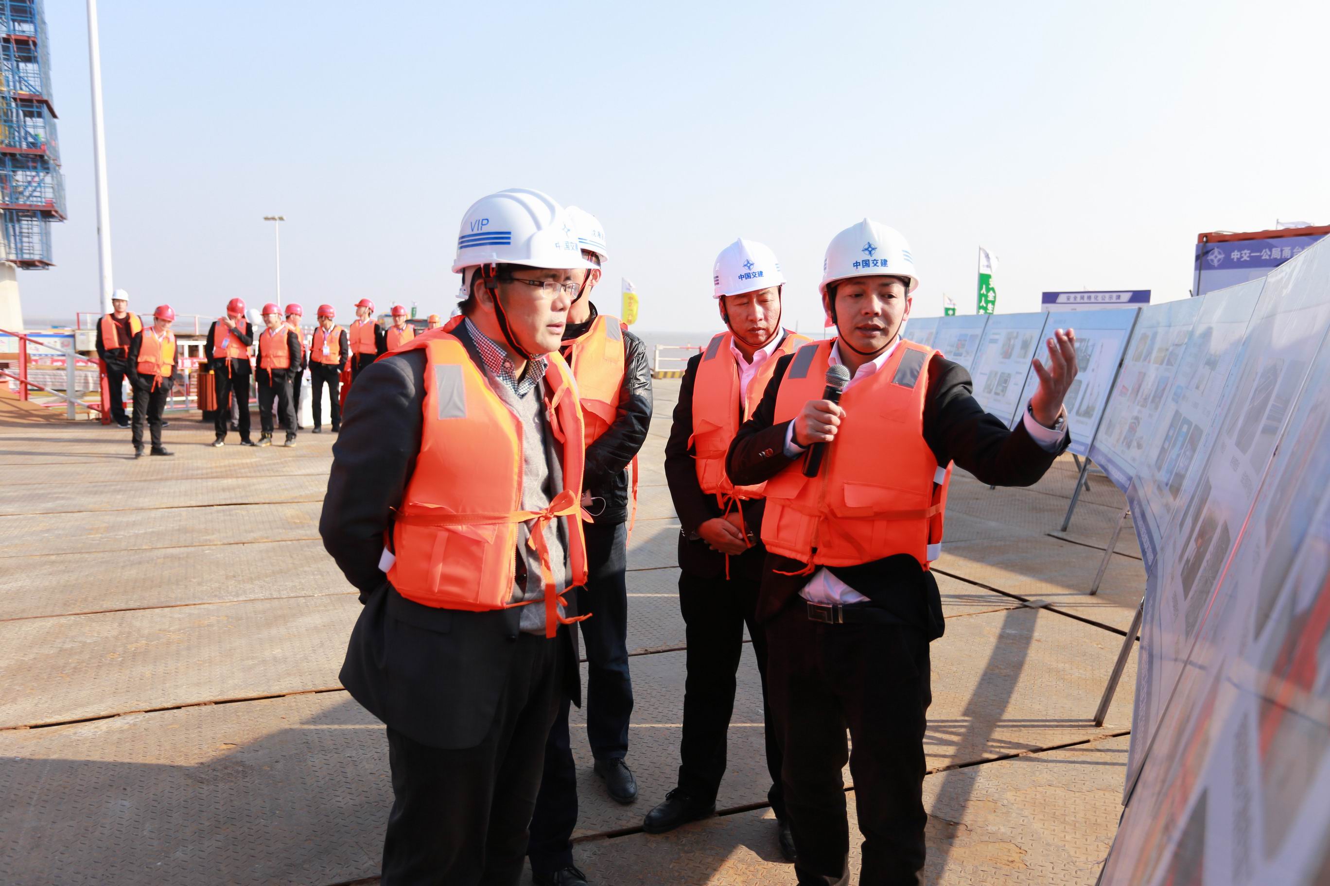 在鳌江特大桥施工现场,李志胜认真听取了项目部在标化工地建设、平安工地建设、施工工艺创新等亮点工作的详细介绍,并对鳌江特大桥工程取得的成绩表示充分肯定和赞赏。他强调,甬台温复线平苍段工程是省重点工程,对于构建全省“四大交通走廊”,打造1小时交通圈有着重要意义,各参建单位要再接再厉,趁势而上,继续围绕项目建设总体目标,不断创新施工工艺,坚持标准化建设,着力全面扫清工程障碍,确保工程项目按时保质建成通车。