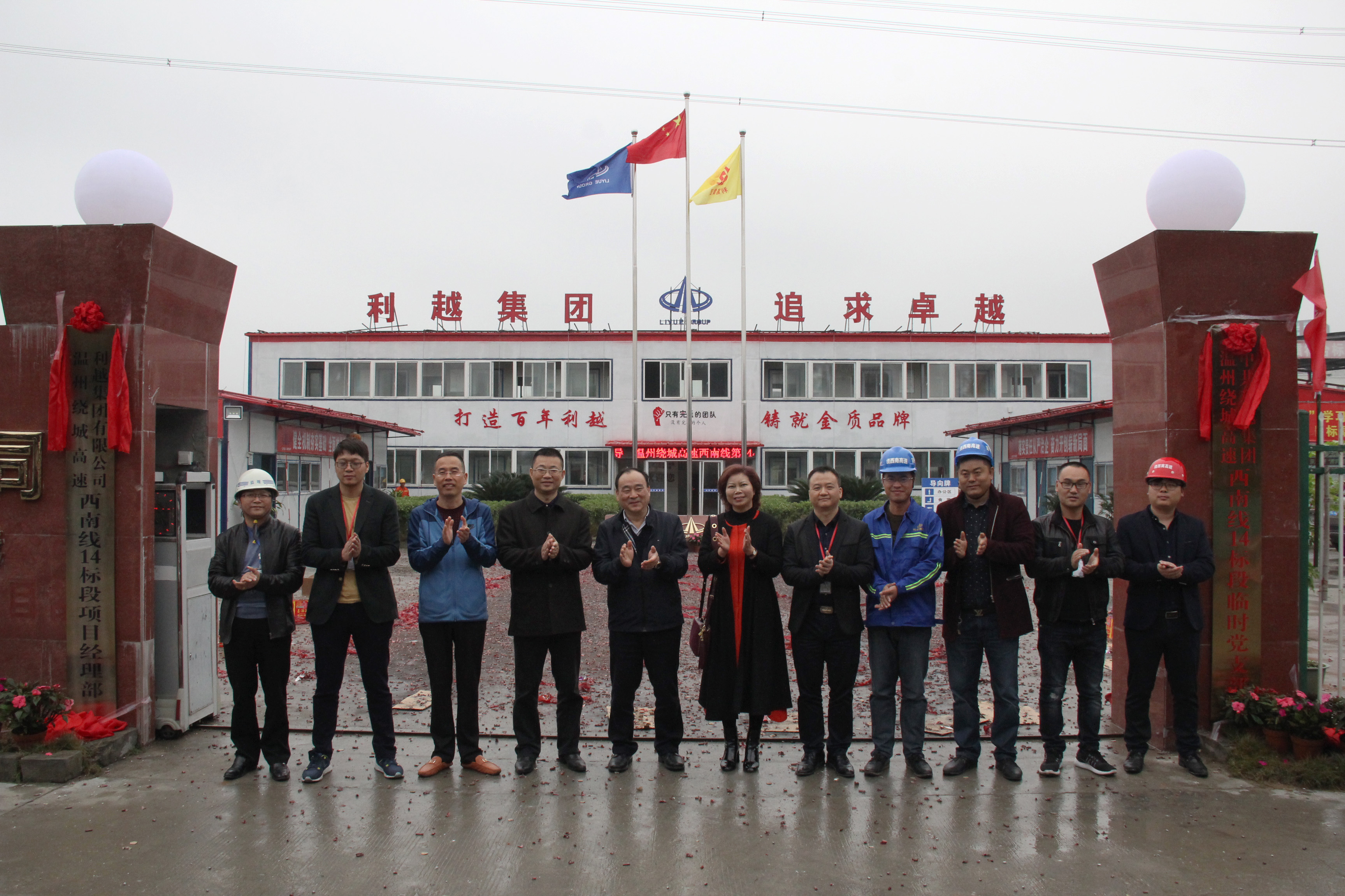 12月22日上午,在喜庆的鞭炮声中,由利越集团承建的绕西南工程第14标段举行了简朴而热烈的项目揭牌仪式。集团副总经理、绕西南公司董事长管连众,瑞安市高速办主任徐军凯、利越集团副总经理郭美英、总工陆军强等出席了揭牌仪式。