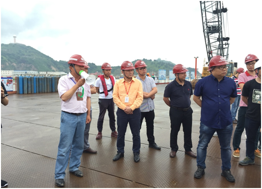 5月23日,集团副总经理管连众、纪委书记郑书讯一行人赴温州瓯江北口大桥土建一标项目部现场指导工作。