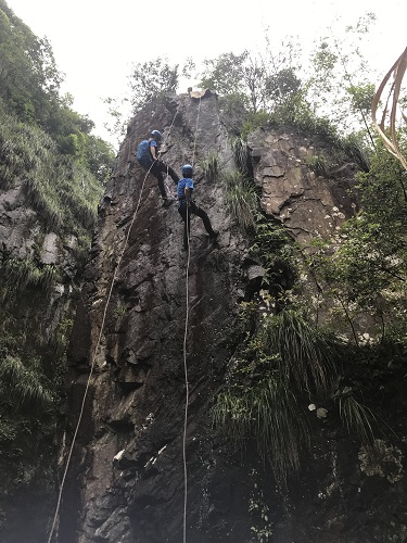 本次课程中,救援队队员克服大雨天气,并针对应急溜索救援系统建设、滑轮系统使用、绳索岩壁速降及攀爬等科目开展技能和体能方面的培训。培训中,队员们认真观看教练员教学演示,并充分结合之前所学保护技术、绳结技术、保护点设置等技能进行练习操作。