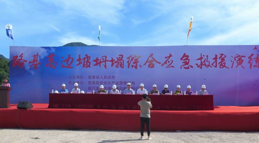 为全面提高项目部应对突发事故的应急救援能力,从源头上预防和减少安全事故的发生,进一步助推“两美”浙江建设,争创省级“青年安全生产示范岗”,7月6日,沈海公司在甬台温高速公路复线平苍段工程7标项目部施工现场举办路基高边坡坍塌事故综合应急救援演练活动。此次演练活动由沈海公司与苍南县人民政府,苍南县安全生产监督管理局联合举办。