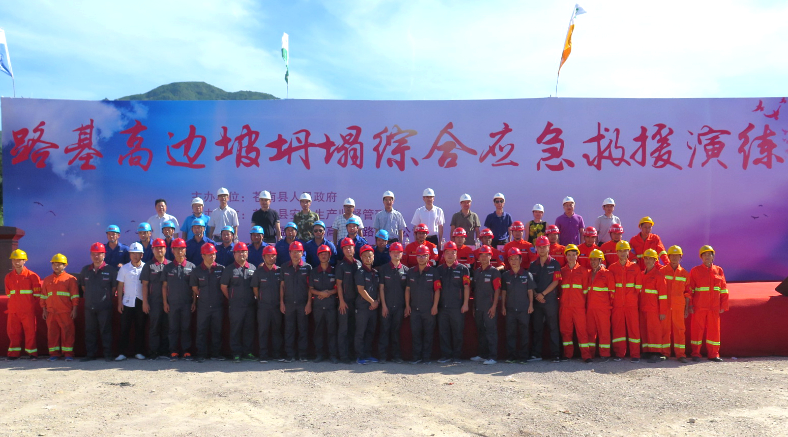 演练结束后,苍南县副县长徐锐、苍南县安监局局长王振芬、沈海公司总经理蔡邦国分别对本次演练活动进行了点评。最后,全体人员进行了“全面落实企业安全生产主体责任”签名仪式。此次演练,有效提升了全体参建人员的安全防范意识和突发事故应变能力,进一步验证和完善了路基高边坡坍塌事故应急救援体系。