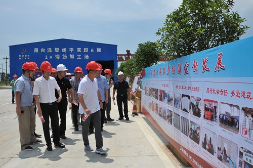 集团党委书记、董事长秦肖一行人首先来到甬台温复线瑞安至苍南段6标、11标工地,参观工地实验室和预制场,感受热火朝天的施工场面,让党员们深入了解集团在建高速公路项目进展情况。