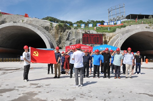 施工现场,秦肖代表交投集团党委,对冒高温战酷暑仍坚持施工的广大建设者表示衷心感谢,并送上了高温慰问品和一批党建、历史、国学方面的书籍,叮嘱建设者们在高温季节注意劳逸结合,在工作之余多读书,丰富精神文化生活。随后,在秦肖的带领下,所有党员在渔寮隧道洞口重温入党誓词,郑重承诺交投人投身大建大美,坚决打赢高速公路硬战,再创温州新辉煌的誓言。