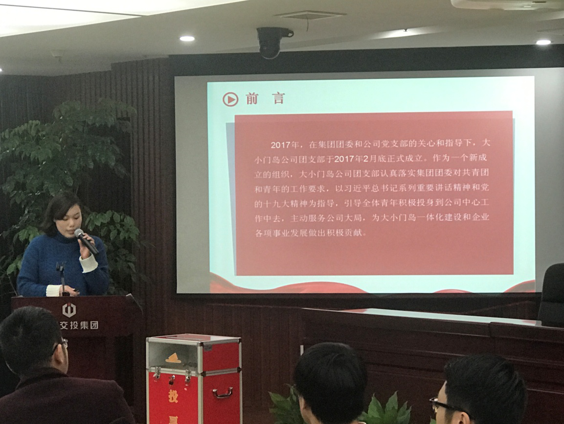 本次“两优一先”联评小组由胡永杰担任组长,成员由各支部团员骨干力量组成,共12人。会上,各团支部(总支)依次就2017年以来支部年度工作情况以PPT的形式进行总结报告,重点从团组织架构、主要亮点及成效、下步工作思路等方面进行汇报。由联评小组进行考核打分。最终考评成绩由各支部年度工作台账成绩、年度工作汇报情况成绩共同组成。最终评选出瓯江口大桥团支部、机关团支部、沈海团支部等三家先进基层团组织。