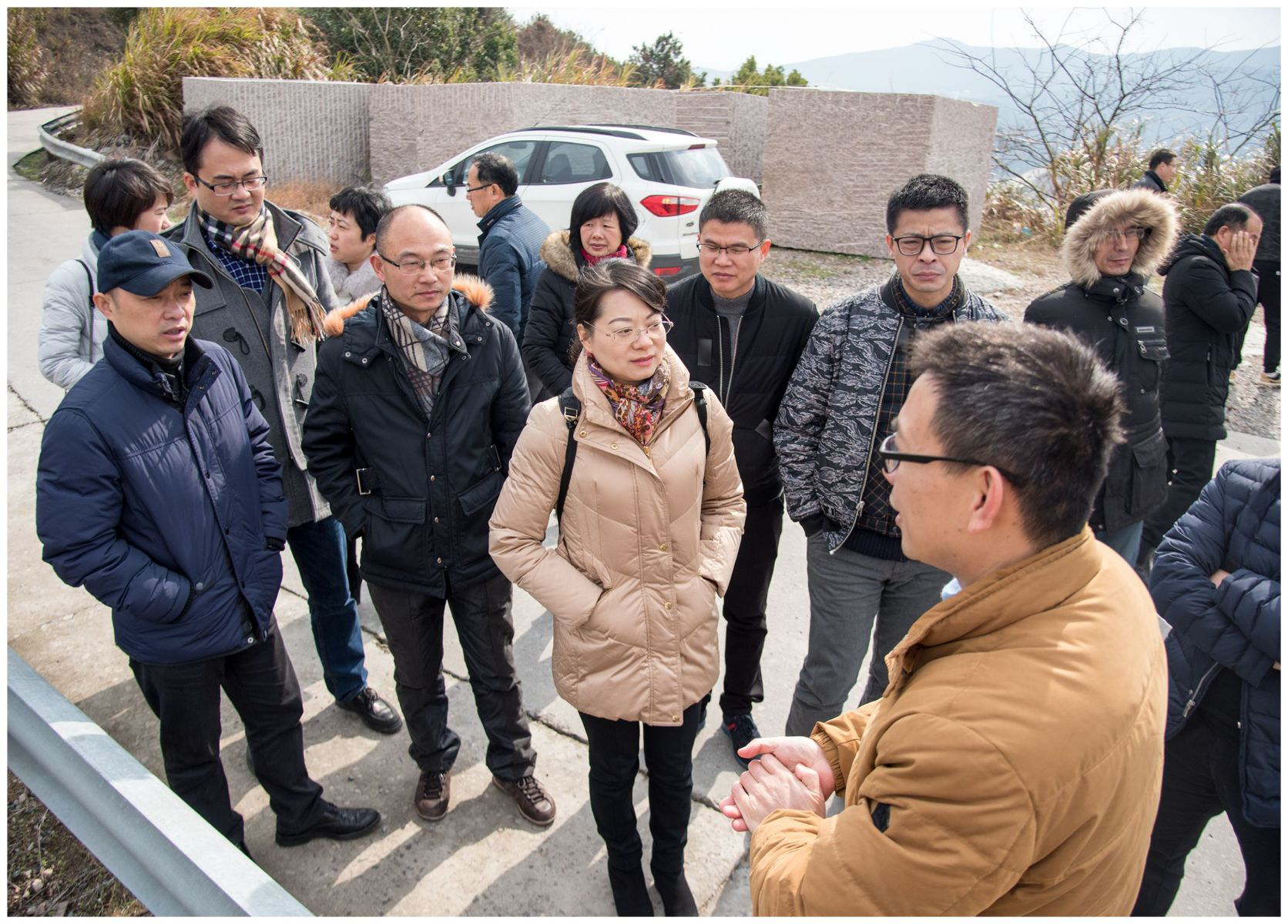1月29日,市财政局投资处处长金劲勇带队赴大小门岛和即将通车的绕西南高速公路项目现场调研。集团财管中心金震州、建管部、大小门岛和绕西南公司相关人员陪同。