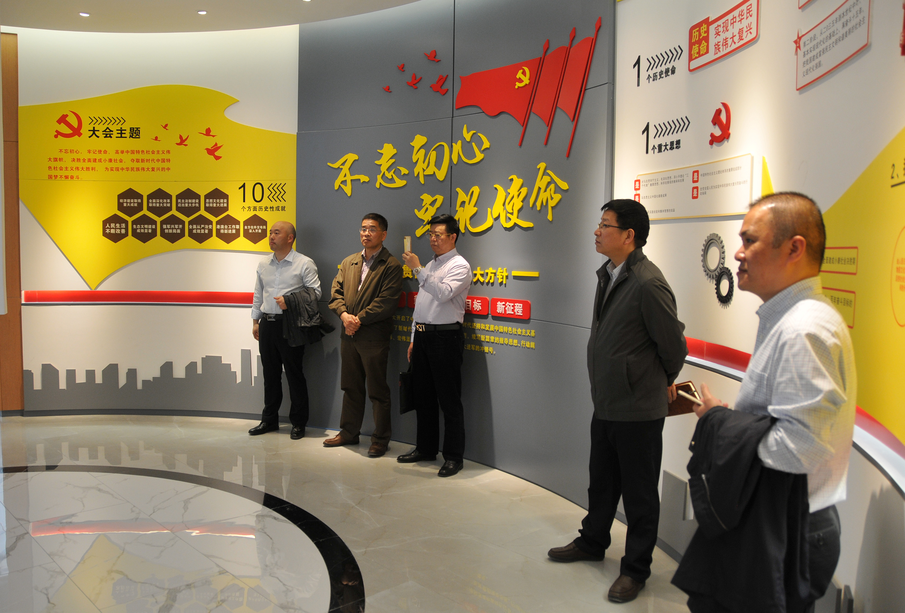 考察团还参观了集团二楼党群服务中心,观看了企业形象宣传片。该展厅将党的建设与企业中心工作互相融合,实现服务功能多元化,获得考察团人员纷纷点赞。随后, 一行人在集团9楼会议室召开交流会。会上,林登荣向考察团介绍了集团党建工作主要做法及下步党建“12345”工作计划,重点分享了党建工作思想政治建设、创先争优活动、党建护航驱动企业深化改革工作、加强对群团工作的领导、加强作风建设等5个方面的经验和做法。同时,瓯江口大桥公司杨秀就工程开展党建示范点创建的背景、做法以及成效做了分享。