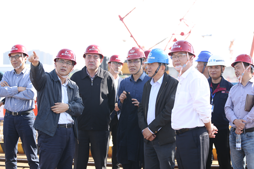 4月18日下午,原交通运输部公路局局长李彦武、浙江省交通运输厅总工李志胜一行督查瓯江北口大桥项目,集团董事长秦肖及相关人员陪同。