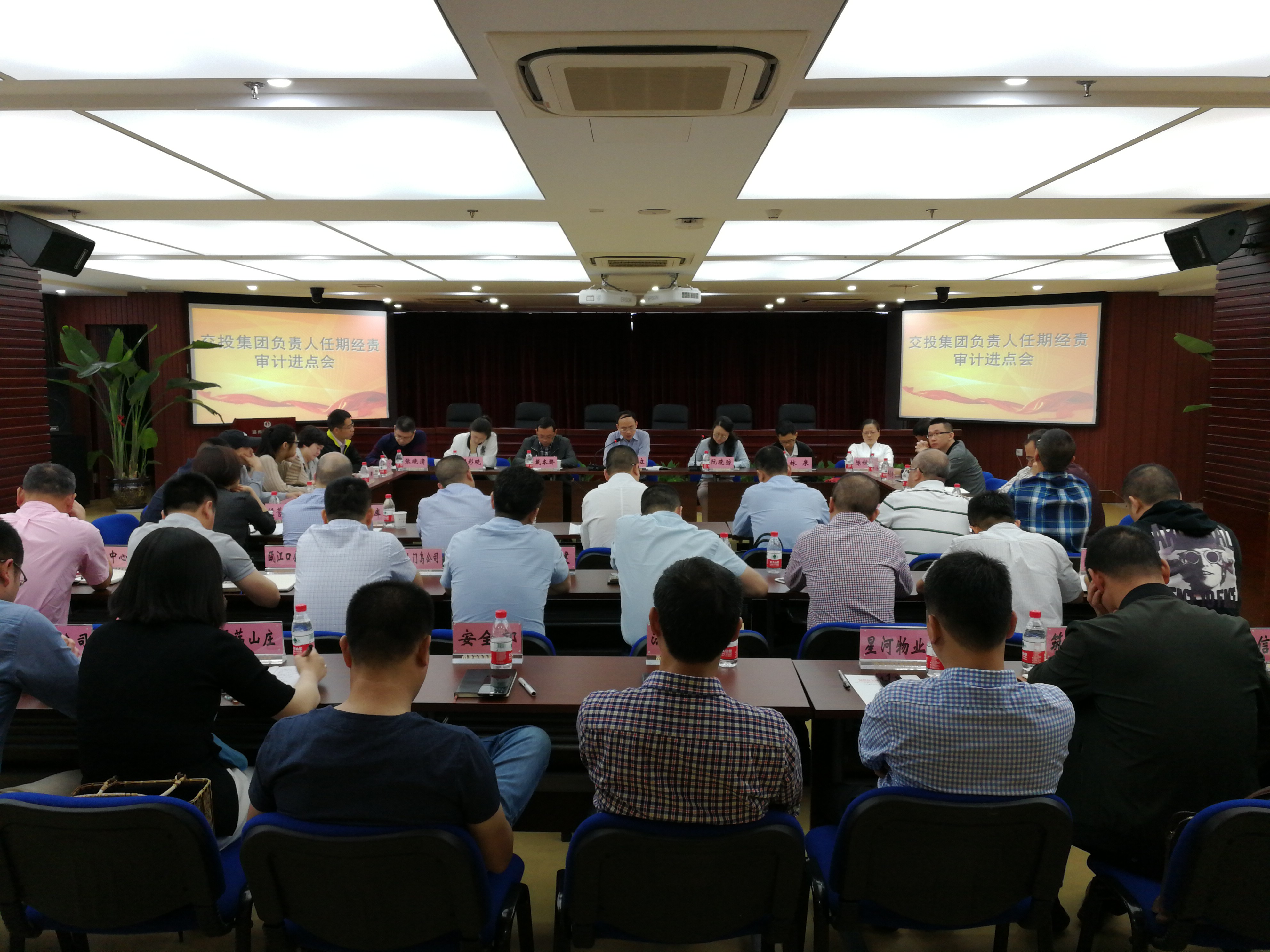 市审计局本轮审计组全体人员,交投集团班子成员,各部门负责人,集团下属二级、三级单位法定代表人、监察监事审计室等共40余人参加了会议。