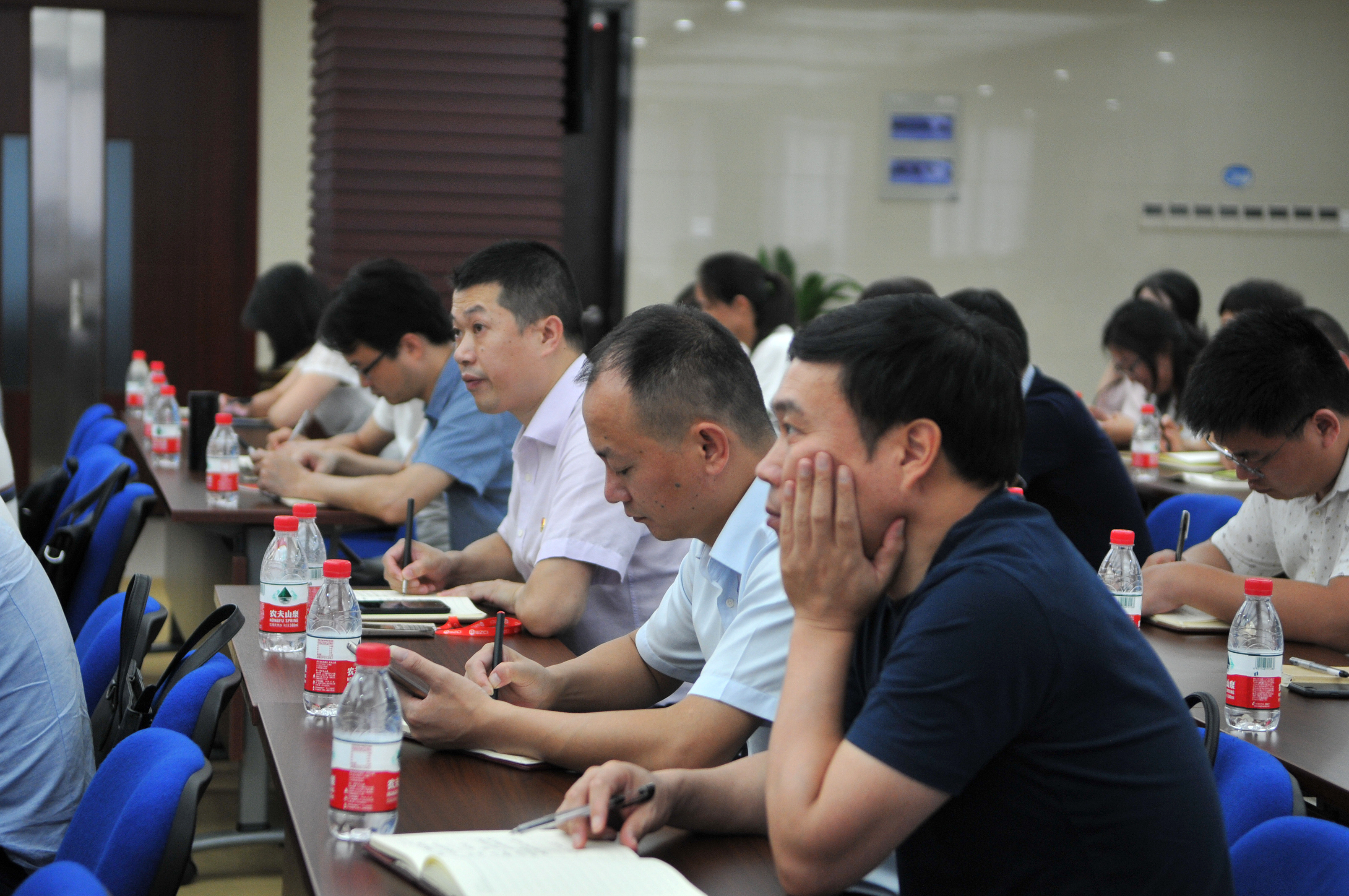秦肖首先带领大家一起原原本本学习了习近平总书记在《中共浙江省委关于“八八战略”实施15周年情况的报告》上作出的重要指示,传达学习了省委十四届三次全会精神,并从深入解读“八八战略”的时代背景、内涵和价值以及引领浙江改革发展所取得的历史性成就等方面全面解读习近平总书记重要指示的重大意义和精神实质。随后,秦肖就如何把学习贯彻习近平总书记重要指示精神、省委十四届三次全会精神和同做好集团当前各项工作结合起来进行了进一步阐述,他指出,党员干部要进一步强化担当精神,把敢担当、乐担当落实到具体工作中,把能担当、善担当体现在具体效果上,一要统筹安排,把握重点,牢固树立全局意识,二要强化督查,精准发力,对既定的工作部署一抓到底,三要拿出魄力,顶住压力,做到“三个敢于”,四要率先垂范,亲力亲为,切实抓好自身建设。秦肖最后强调,党员干部唯有加强学习、强化实践、苦炼内功、提升能力,用担当实干精神和本领在新时代创造新业绩、展现新作为,全力以赴推进集团“8355”发展目标,用实际行动践行“干在实处永无止境,走在前列要谋新篇,勇立潮头方显担当”新期望,推进“八八战略”再深化、改革开放再出发。