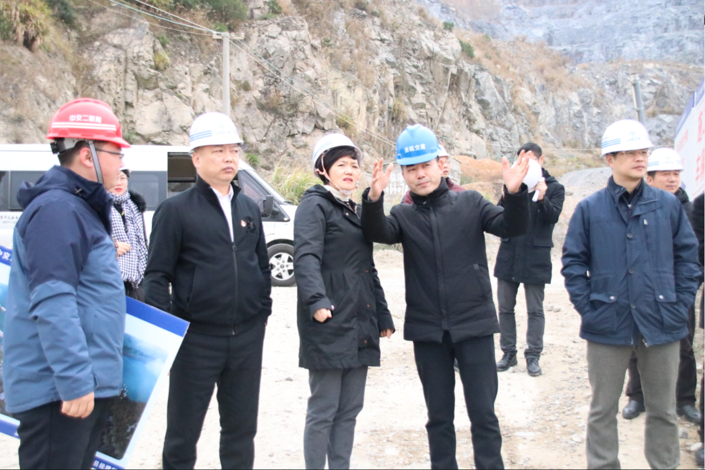 林霞一行首先冒着寒风来到交通城建工业化生产基地实地视察了项目施工现场,给在场的员工带去了新年的问候,现场听取了瓯越交建宋海良关于现阶段基地建设进展、2019年项目规划及当前所面临的政策处理难题等情况的汇报。看到已经初具规模的营盘基厂区,林霞对项目各参建方2018年所付出的努力给予了肯定,同时鼓励大家在新的一年里再接再厉,继续攻坚克难,保质保量完成项目建设任务,争取项目早日完工,产出效益,更好地服务于地区社会经济发展。同时,洞头区政府及各有关职能部门也将继续发挥服务职能,为项目顺利推进保驾护航,确保按时完成国家重点工程瓯江北口大桥节段梁供应任务。