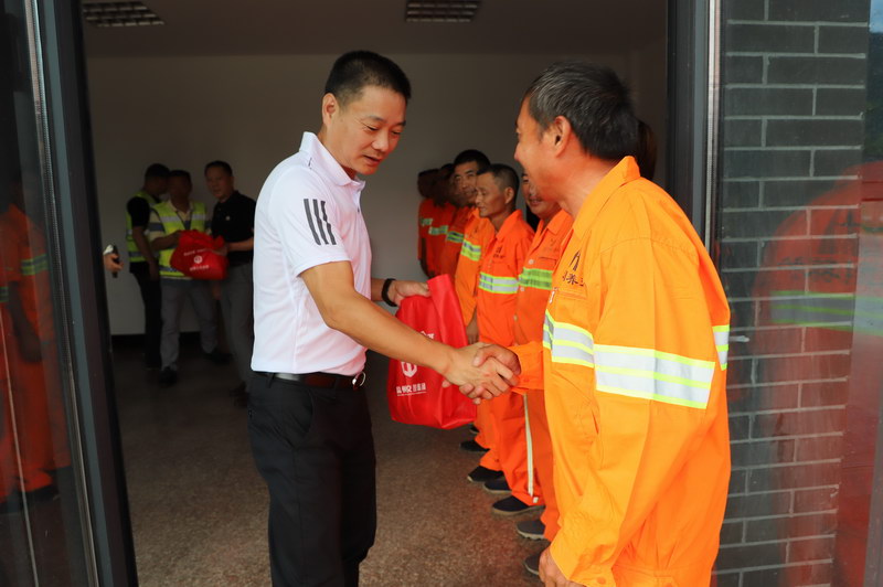 入夏以来,气温节节攀升,烈日炎炎,热浪袭人,7月29日下午,集团总经理南品仁、副总经理戴新荣一行赴养护中心对坚守在一线的员工进行高温慰问,带来了集团对一线员工的深切关爱。集团办公室徐丹玲,养护中心戴建敏、杜卫东等陪同。