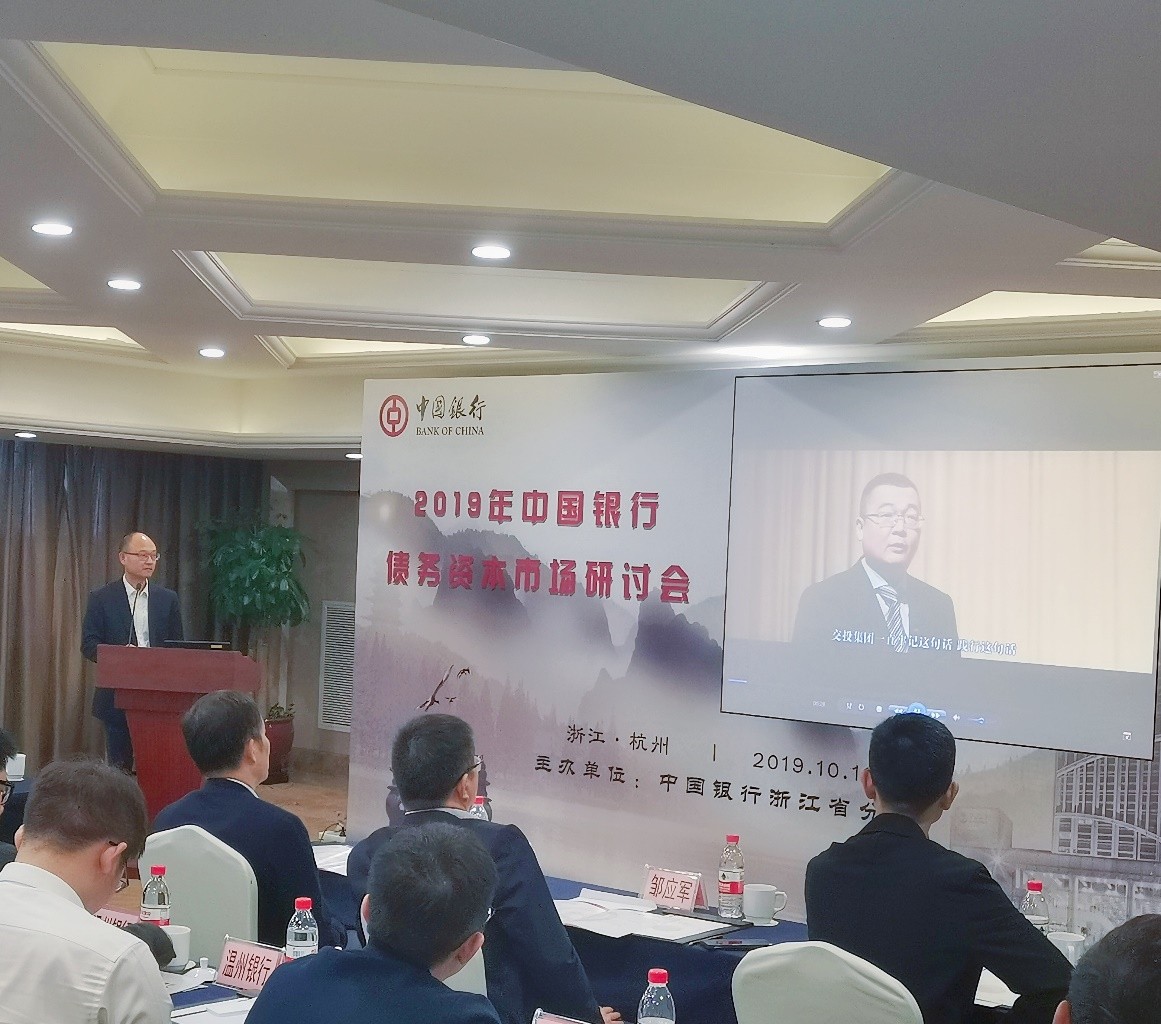 10月18日, 2019年中国银行债务资本市场研讨会在浙江杭州圆满举行,会议共同对2019年债务市场形势进行深入分析探讨。集团财管中心金震州受邀代表集团参加了本次活动并致辞。