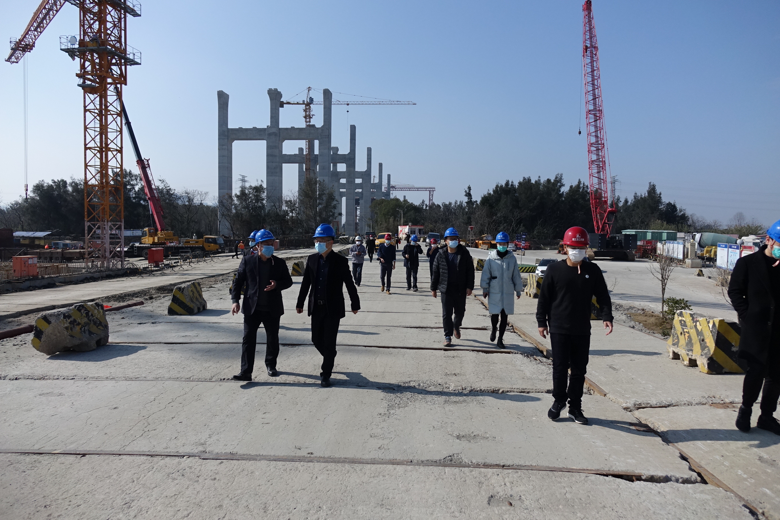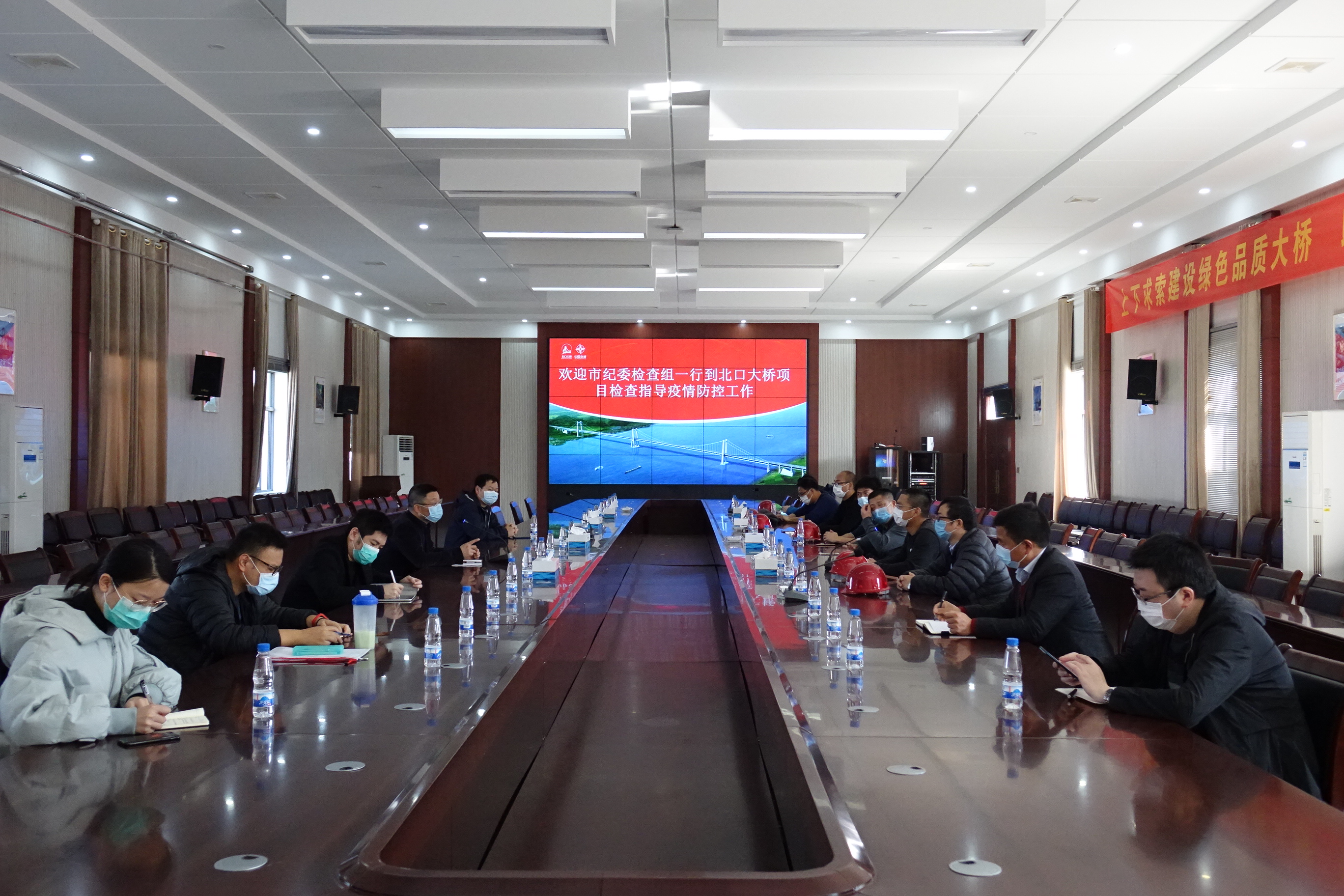 陈劼高度肯定了瓯江北口大桥在防疫工作中所做的努力,并一一解答了当前防控工作中存在的问题和困难。他强调,瓯江北口大桥项目作为省市重点工程,市委、市政府高度重视项目建设情况及“三返”人员防控工作,全体建设者要严格按照市级疫情相关文件要求,把防控工作作为重中之重去落实,同时要发挥基层党建和党员先锋的力量,积极推进项目复工复产。