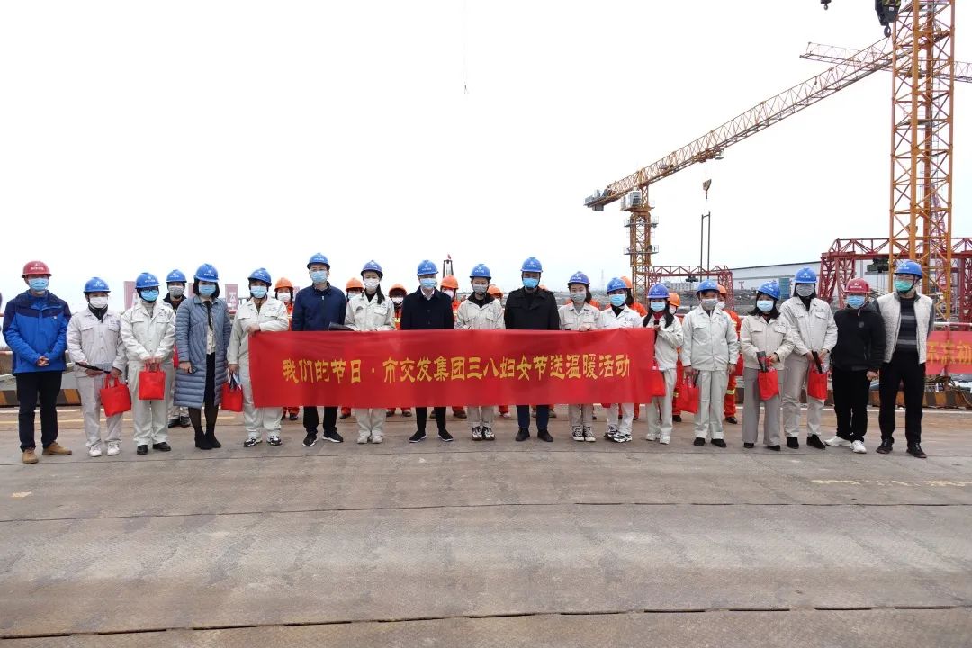 3月6日,best365足球官网总经理南品仁、总经济师、工会主席王道川、副总经理、总工程师郑锋利代表集团工会在瓯江北口大桥项目工地开展“三八”妇女节慰问活动,向奋战在工地一线的女职工送去节日的祝福。