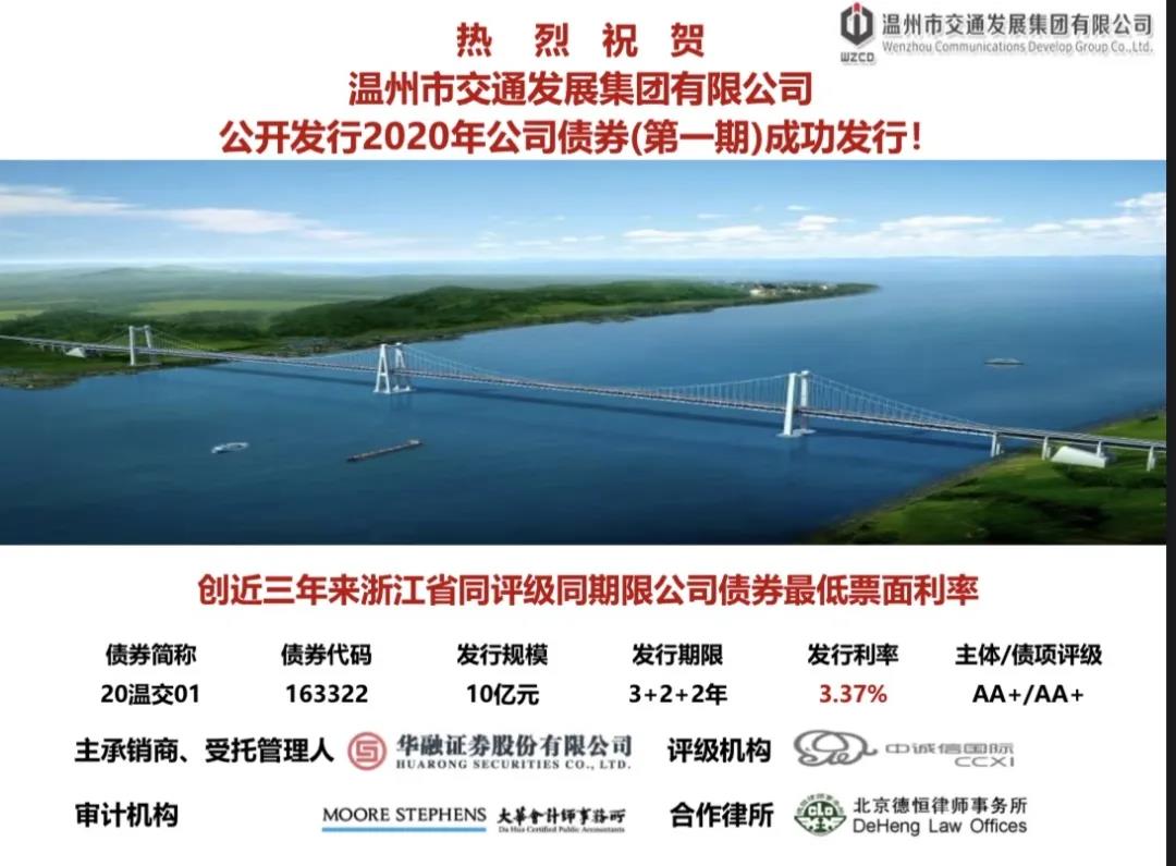 3月31日,best365足球官网与华融证券公司合作,在上海证券交易所成功发行10亿元公司债,本次债券期限为 7 年期(3+2+2),第 3 年末及第 5 年末附发行人调整票面利率选择权和投资者回售选择权。债券发行期间,best365足球官网密切跟踪并研判市场形势,积极寻找发行时机,及时制定发行策略,在各方的密切配合与大力支持下,最终票面利率为3.37%,创近三年浙江省同评级同期限(3+2或3年)最低利率,这也是集团自2019年12月5日在上海证券交易所成功发行3.87%同评级票面最低利率后又一新的突破。