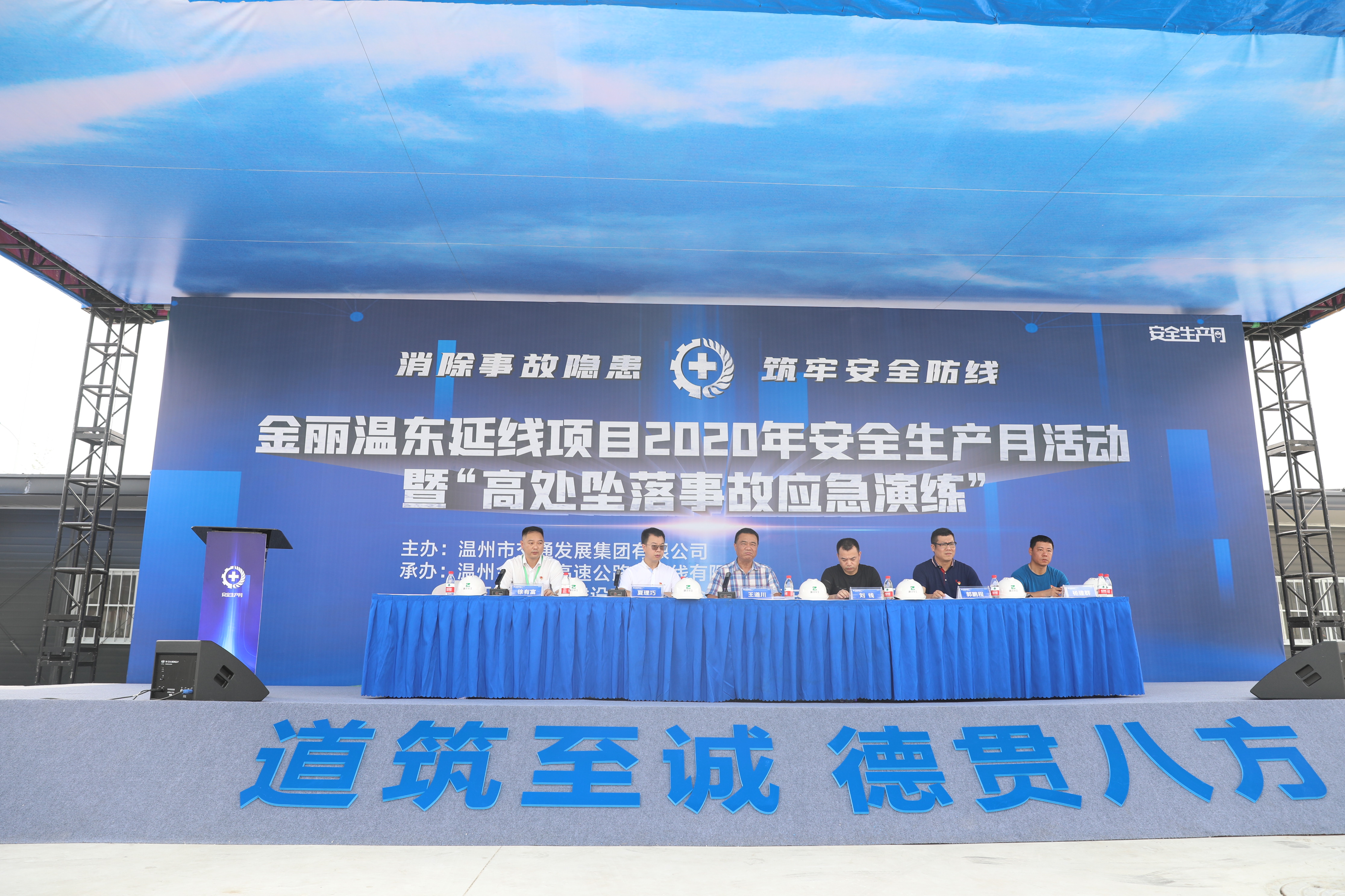 为深入贯彻落实第19个安全生产月“消除事故隐患,筑牢安全防线”活动主题精神,进一步做好安全宣传教育及监督检查,确保一旦发生事故能有效地按照预定的应急方案实施救护,最大限度地减少事故伤害和降低财产损失,6月24日上午,best365足球官网主办高处坠落应急救援演练,演练由金丽温东延线公司、省交工路桥公司金丽温东延线2标项目部承办。集团总经济师、工会主席王道川出席本次活动。集团安全部及金丽温东延线项目各参建单位等70余人参与本次活动。