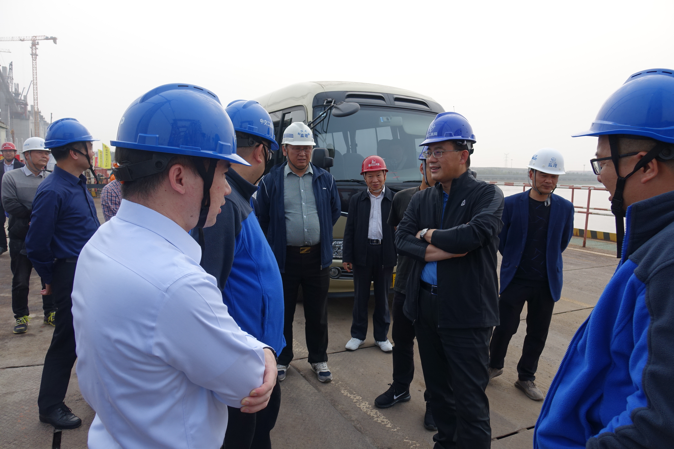 4月1日下午,浙江省交通运输厅党组成员、总工程师李志胜赴温州瓯江北口大桥调研,温州市交通局副局长蒋理江、集团董事长朱三平、瓯江口大桥公司潘济、杨海忠等陪同。
