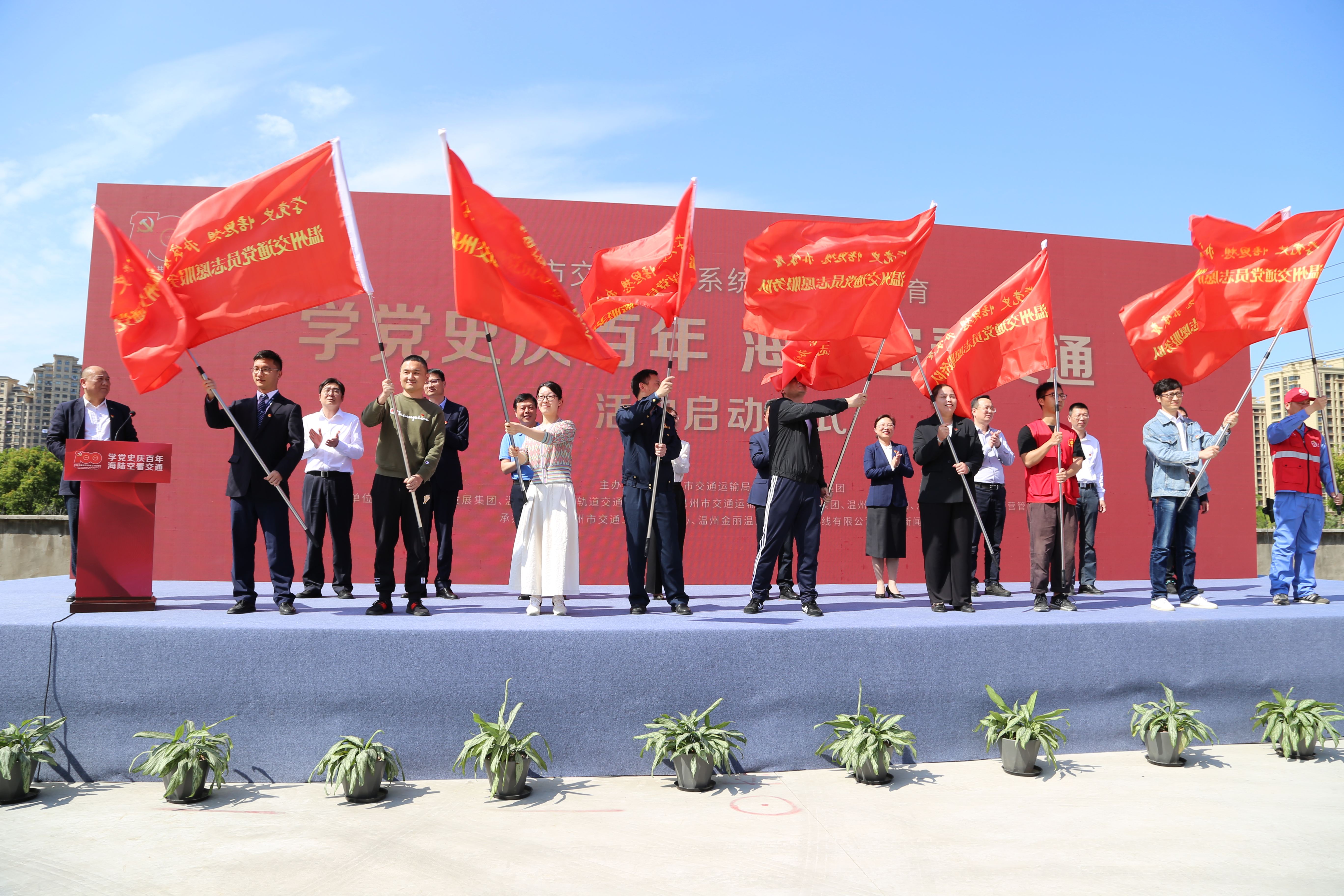 4月26日,全市交通运输系统党史学习教育“学党史庆百年,海陆空看交通”活动启动仪式在集团金丽温高速公路东延线工程产学基地举行。市交通运输局党委书记、局长项伟胜,市委宣传部副部长叶艳,温州日报报业集团党委委员、副社长王丹容,集团党委副书记周列茅等领导出席此次会议。