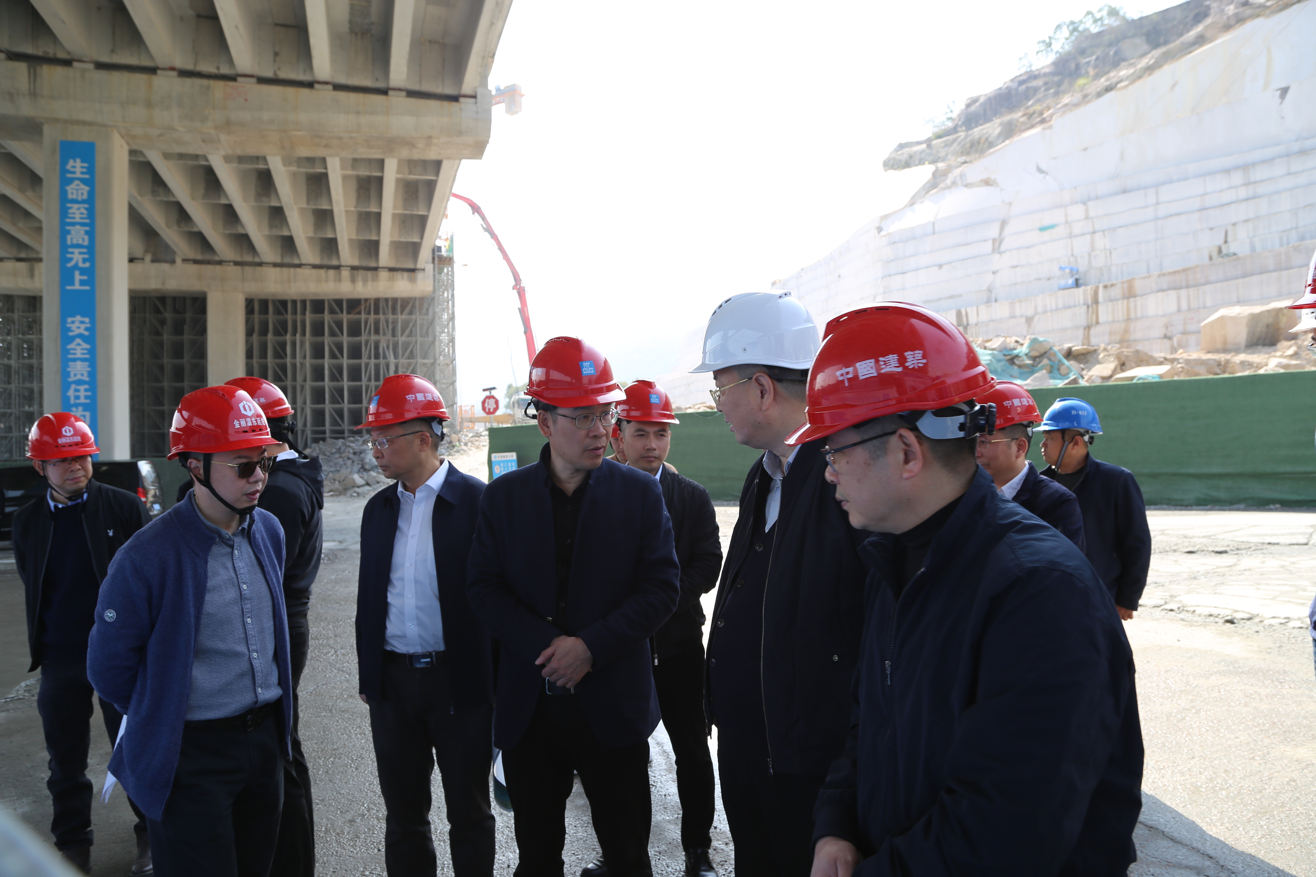 林生豹一行深入施工一线,实地查看了东延线工程瑶溪二号桥及代建项目环山北路南半幅施工现场,听取了项目概况、项目特点、工程进展、下步计划及存在问题等情况的汇报,并对项目建设推进情况给予肯定。