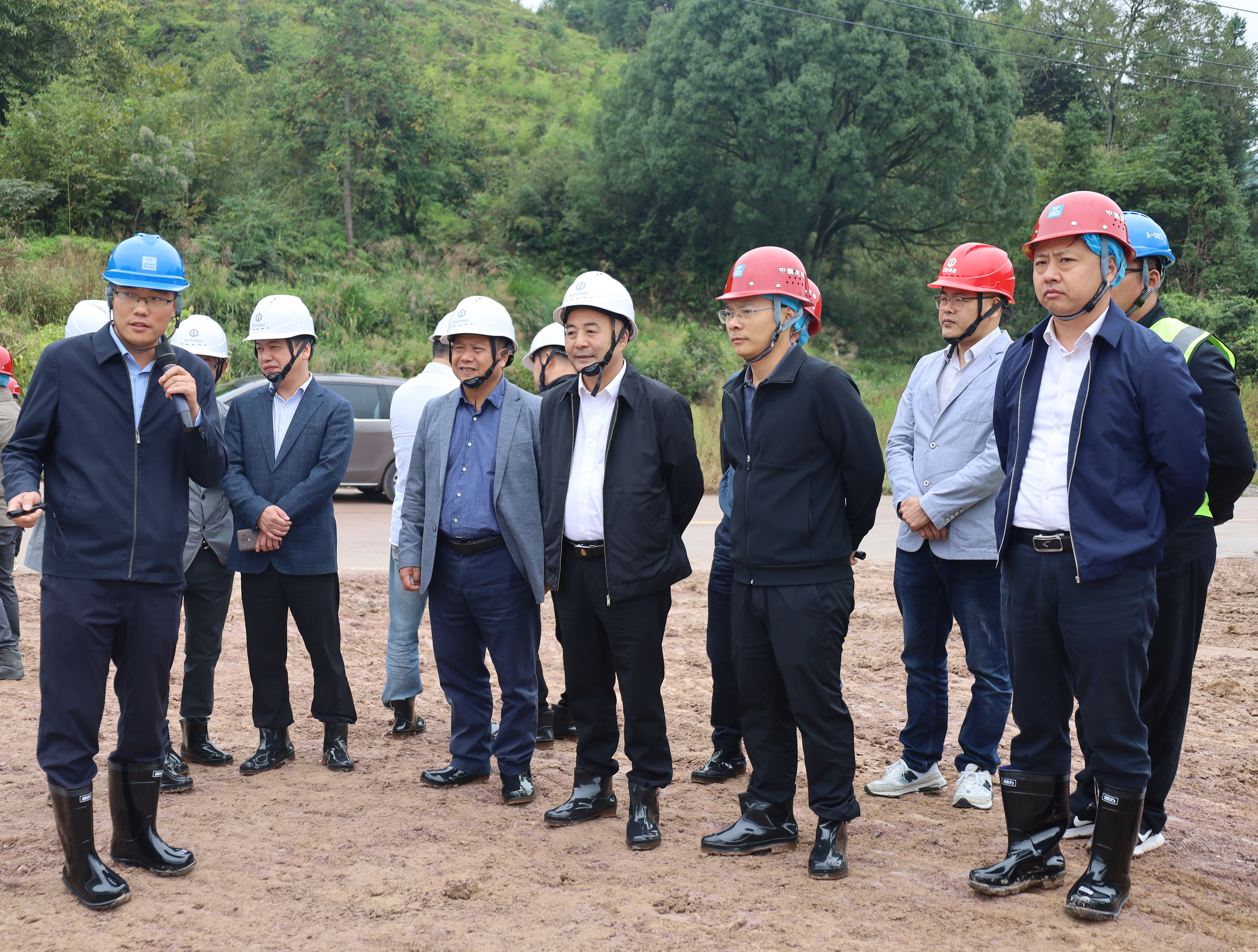 10月11日,best365足球官网总经理翁结群、纪委书记郑书讯带队赴苍泰高速项目开展全线现场调研。集团办公室、党群部、财管中心、建管部、质安部参加调研。