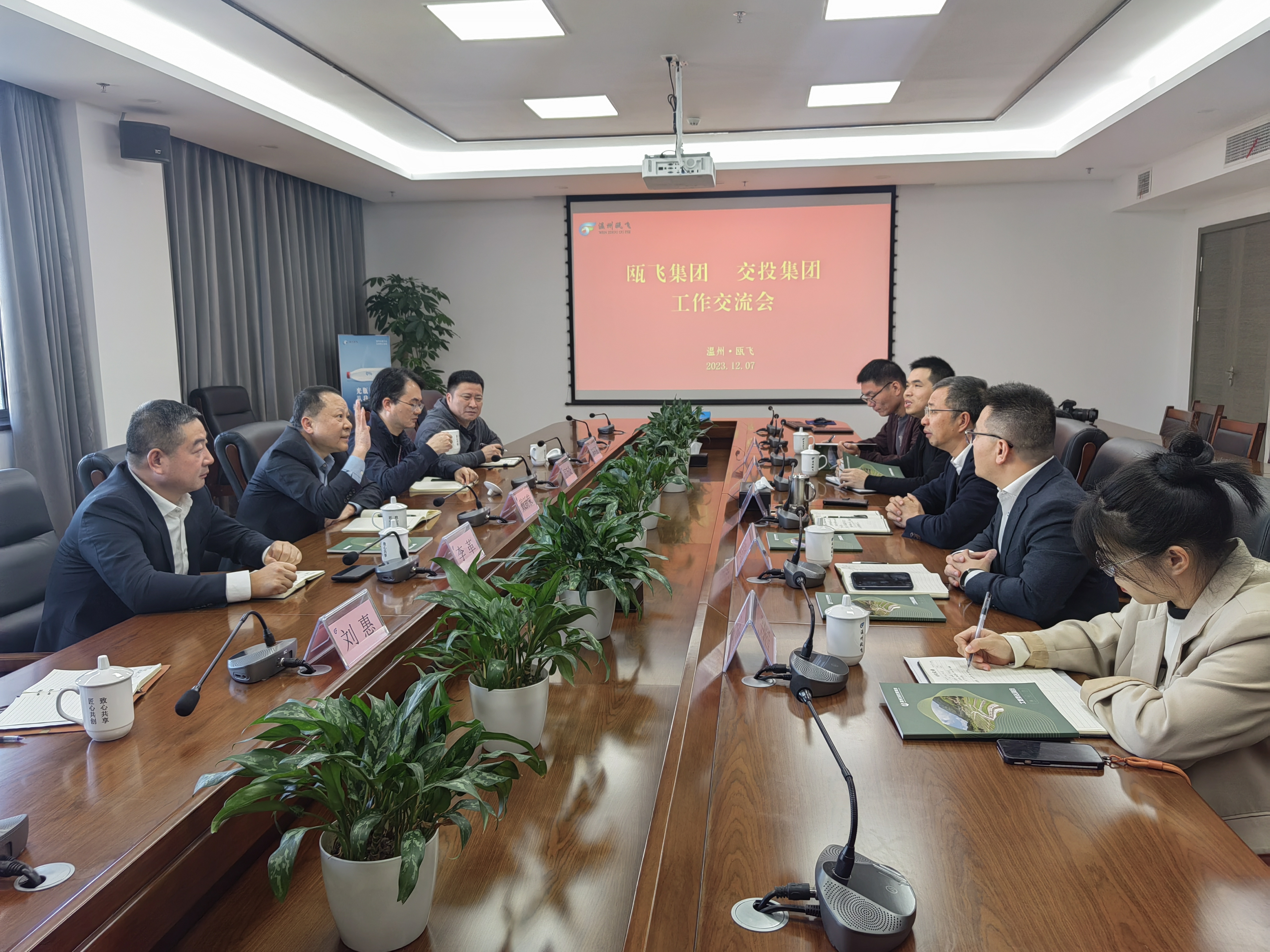 12月7日下午,集团副总经理戴新荣带队赴温州市瓯飞开发建设投资集团有限公司进行工作交流,集团资管部、经营公司等相关人员陪同。瓯飞集团董事长、总经理倪士章、副总经理张春旭,瓯飞集团相关业务部门及二级单位负责人进行了接待。