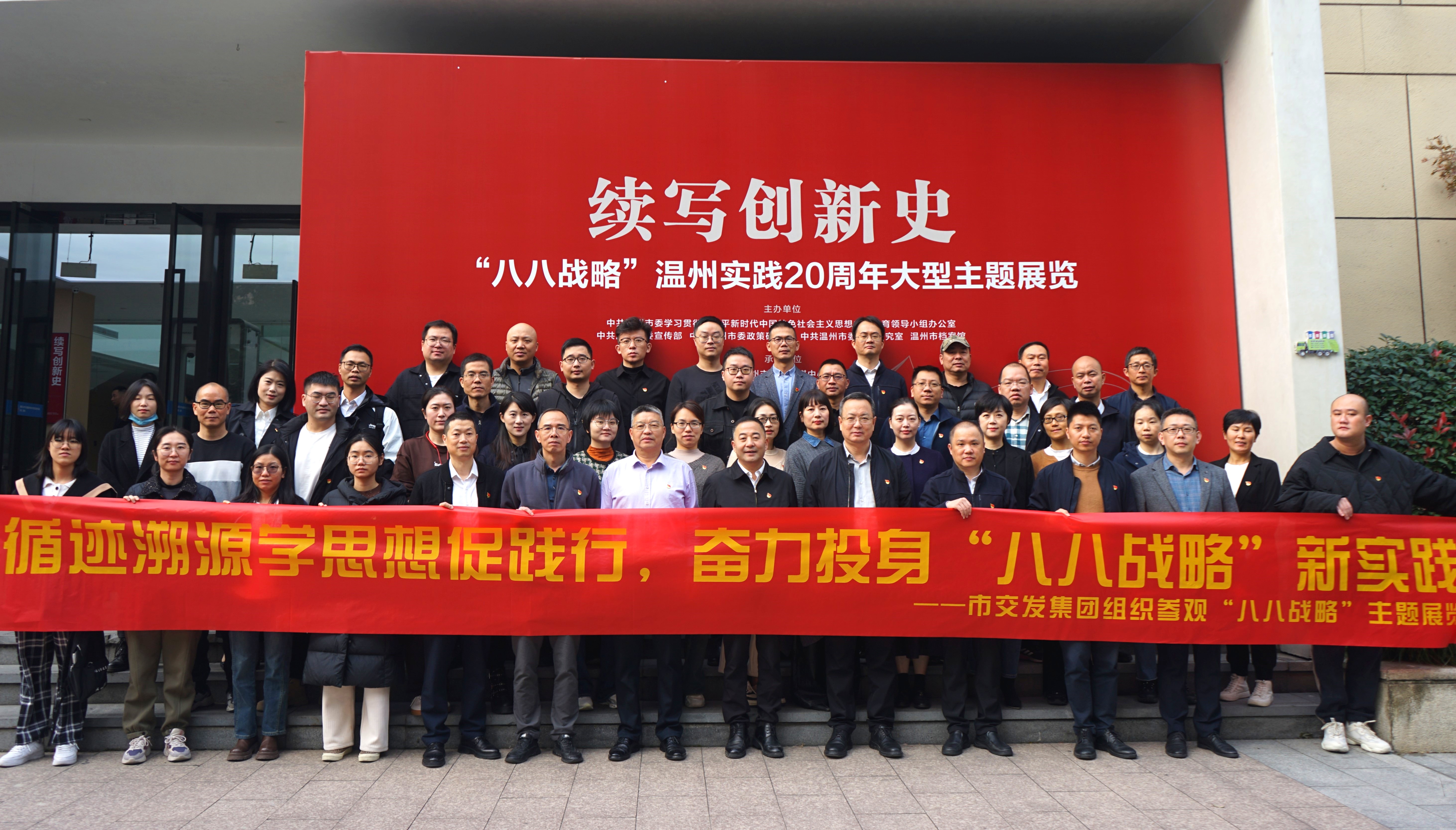 集团组织党员干部、知联会代表、团员青年代表参观了展览的伟大擘画、精彩蝶变、勇立潮头三部分,认真观看珍贵史料、图片、文字、档案文献、专题影像、实物、多媒体互动等,并听取讲解员介绍,深入了解温州20 年来在“八八战略”指引下发生的全方位、系统性、深层次精彩蝶变。参观中,大家纷纷表示,“八八战略”是习近平总书记留给浙江取之不尽、用之不竭的宝贵财富,忠实践行“八八战略”是浙江不断进步、发展壮大的制胜法宝。在新征程上,要始终坚持以习近平新时代中国特色社会主义思想为指导,深入学习贯彻习近平总书记考察浙江重要讲话精神,持续推动“八八战略”走深走实,为我市续写创新史、走好共富路、争创先行市贡献更大交发力量。