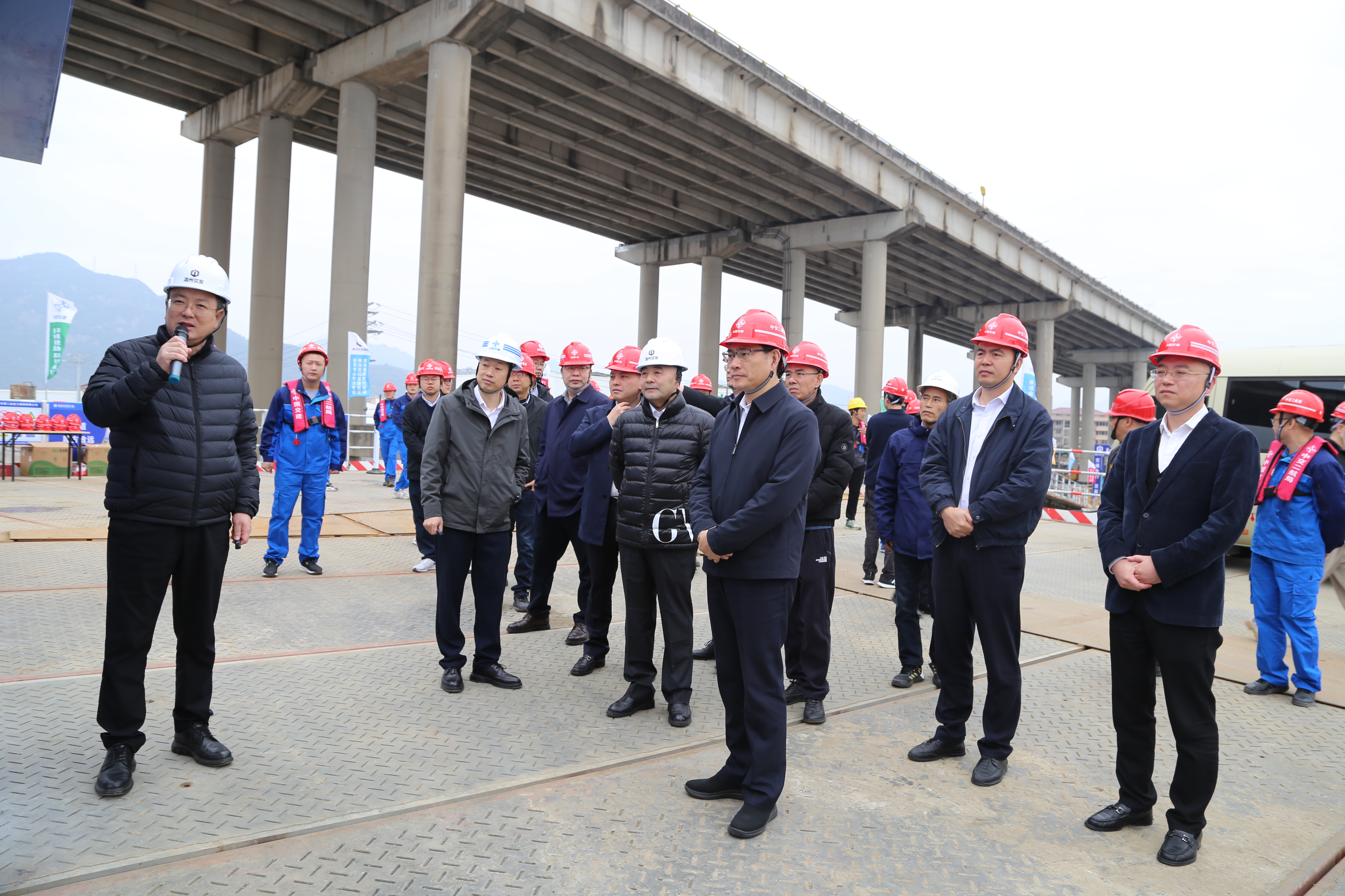 王军一行深入施工一线,实地查看了甬台温改扩建工程北白象至南白象段推进情况,认真听取了项目概况、进展情况、交通组织、存在问题及下步计划等方面的汇报,并对下阶段建设实施提出要求。