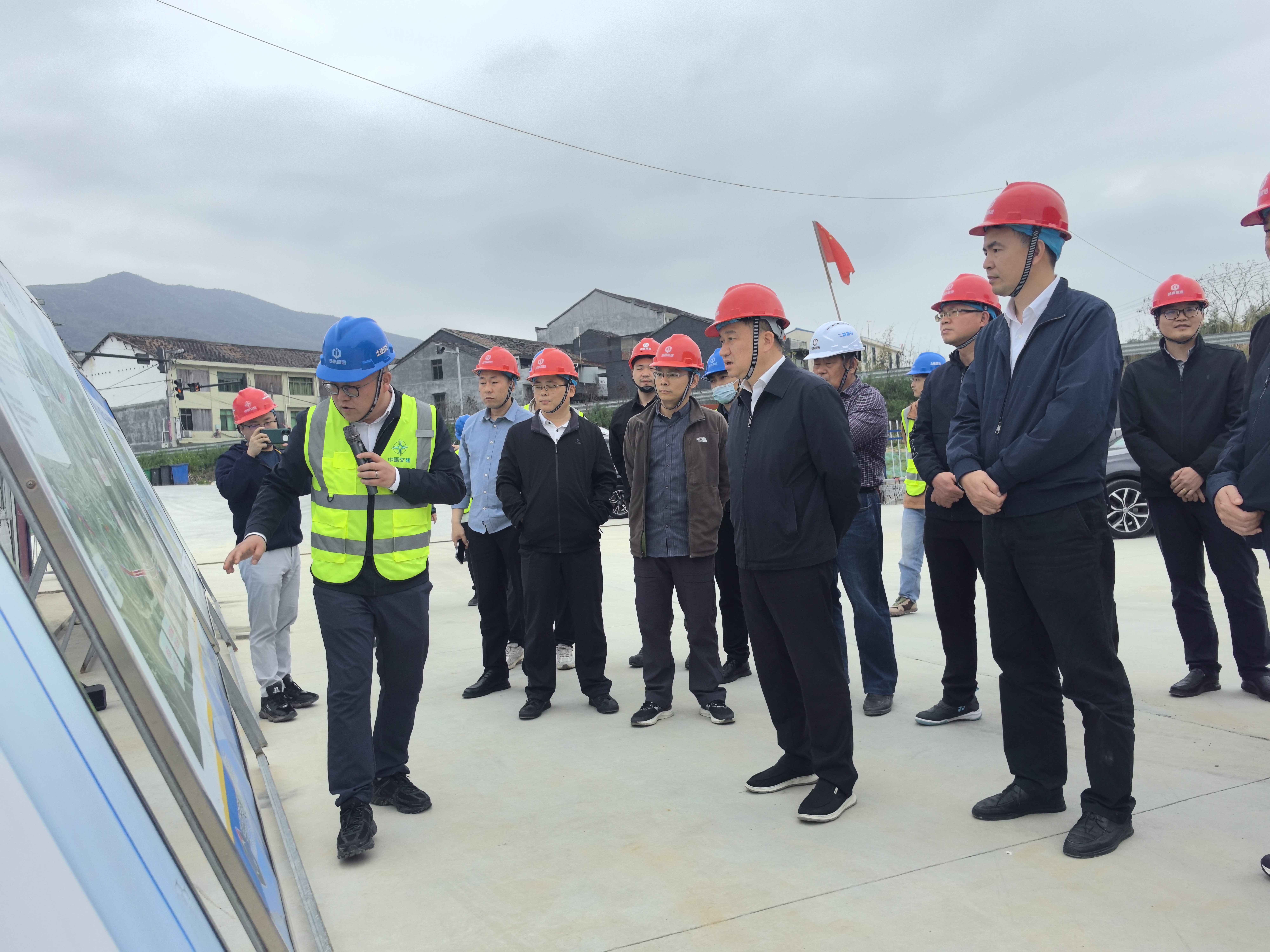 3月26日,温州市交通运输局党委书记、局长黄定恩,总工程师陈亮赴苍泰项目调研,苍南县副县长叶小剑、泰顺县副县长赖立峰、集团党委副书记周列茅、苍泰项目相关负责人陪同。