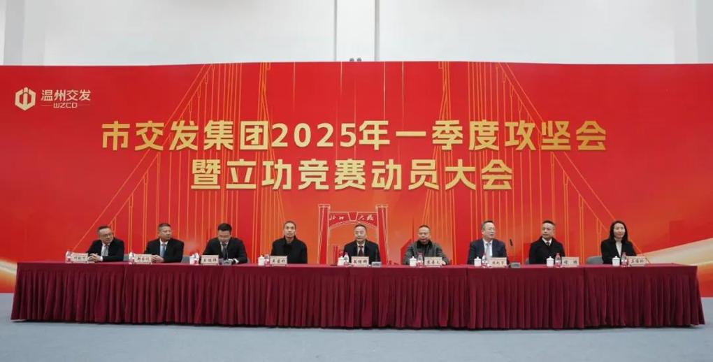 集团党委书记、董事长翁结群作动员讲话,号召以“定了就干、干就快干、干就干好”的坚定决心,打赢开局战,勇夺开门红,努力交出一份不负春光、不负时代的高分答卷。一是大抓项目,大促投资,大干交通。加快苍泰、青文、甬台温改扩建、甬莞高速洞头支线等重大项目建设,确保年内建成乌牛互通,确保重大攻坚节点达标率100%、投资完成率和投资入库率均达到100%。广泛开展立功竞赛,实施“八比八赛”,助推项目高质量建设。二是勇闯新路,勇拓市场,勇攀高峰。各经营单位要聚焦提升竞争力,向管理要效益,向创新要动力,向市场要增量,再造增长极,努力实现营收、新增合同额、利润等关键指标向上向好、攀高跃升。三是争创一流,争当快马,争做示范。发挥党建引领作用,实行领导干部带头冲在前,党员先锋举旗打头阵,攻坚骨干亮剑挑大梁,营造比学赶超、大干快上的浓厚氛围。