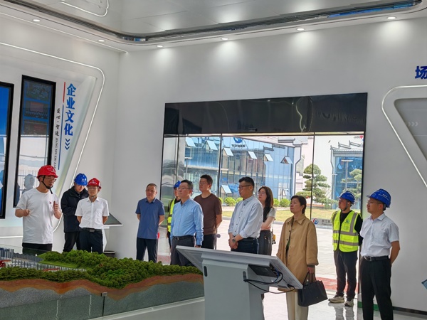 余谦一行人参观了泰顺智慧梁厂智慧化展厅,实地查看厂区智慧生产车间、厂区试验室,详细了解预制梁板生产工艺、产能、质量把控措施和厂区施工进度等情况。
