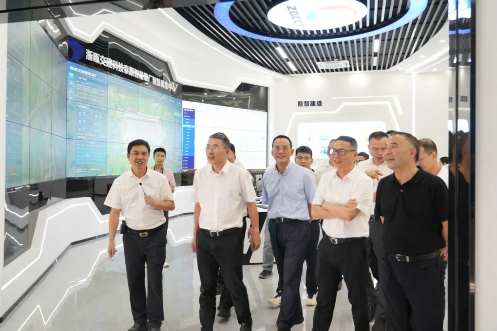 在泰顺智慧梁厂数智建造创新管理中心,陈擎苍一行实地调研了智慧化管理模式在交通工业化进程中的实际应用,现场察看了信息化管理平台运行情况,并提出指导意见。