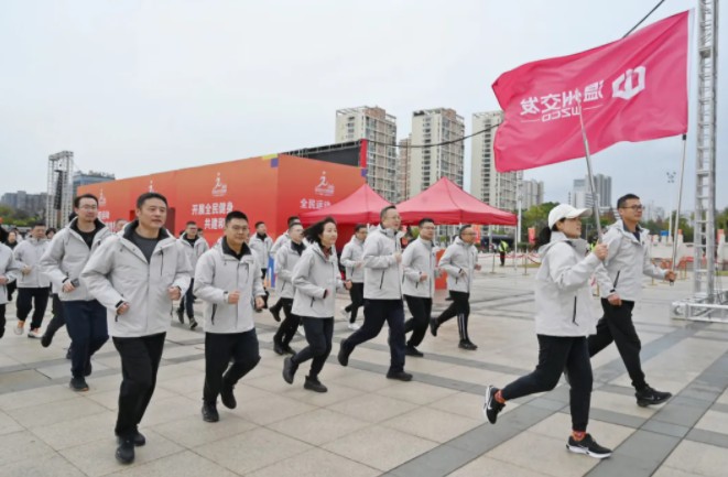 上午7时30分,国歌声划破晨空,五星红旗冉冉升起,集团各个职工方阵肃立致敬,将家国情怀与奋斗信念深植心底。一声发令枪响后,身着统一服装的职工们步伐铿锵,沿着既定路线并肩前行,“交发交发,活力迸发,强城有我,拼搏奋发”的口号嘹亮回荡。队员们相互鼓劲、热情昂扬,额间汗水与脸上笑容相映,生动展现了交发人勇毅笃行的精神风采。